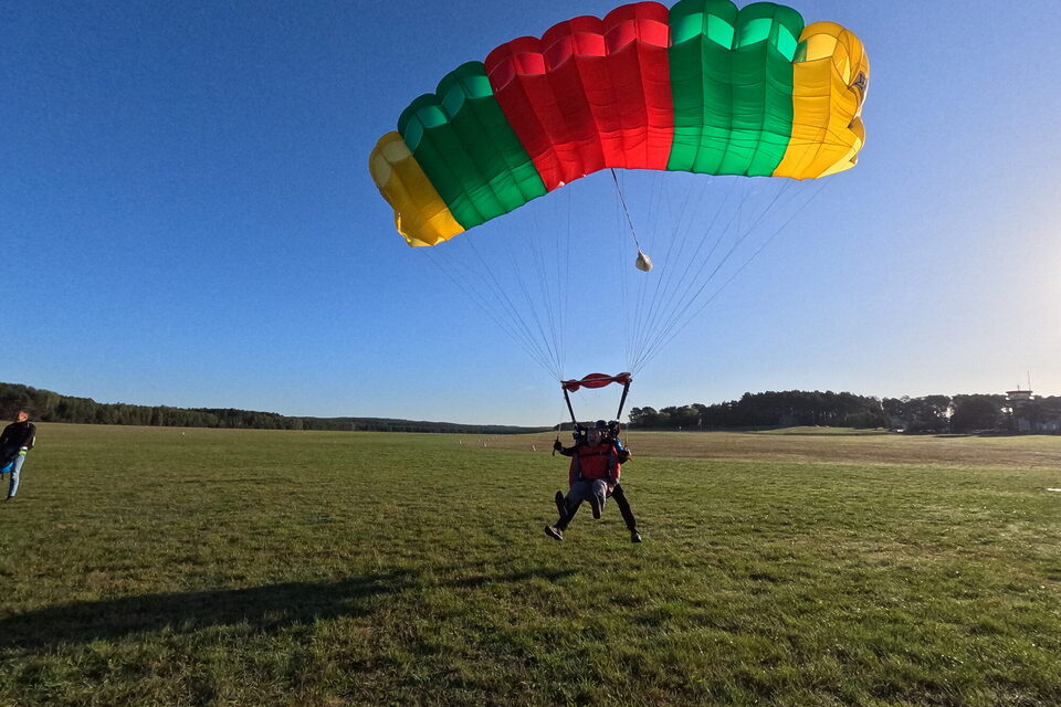 Przed każdym skokiem w tandemie przeprowadzamy krótkie szkolenie, które przygotowuje Cię do tego niesamowitego doświadczenia. Instruktor wyjaśnia wszystkie etapy skoku – od momentu wyjścia z samolotu po lądowanie. Dowiesz się, jak zachować się w powietrzu, jak współpracować z instruktorem i jakie procedury bezpieczeństwa obowiązują podczas skoku.