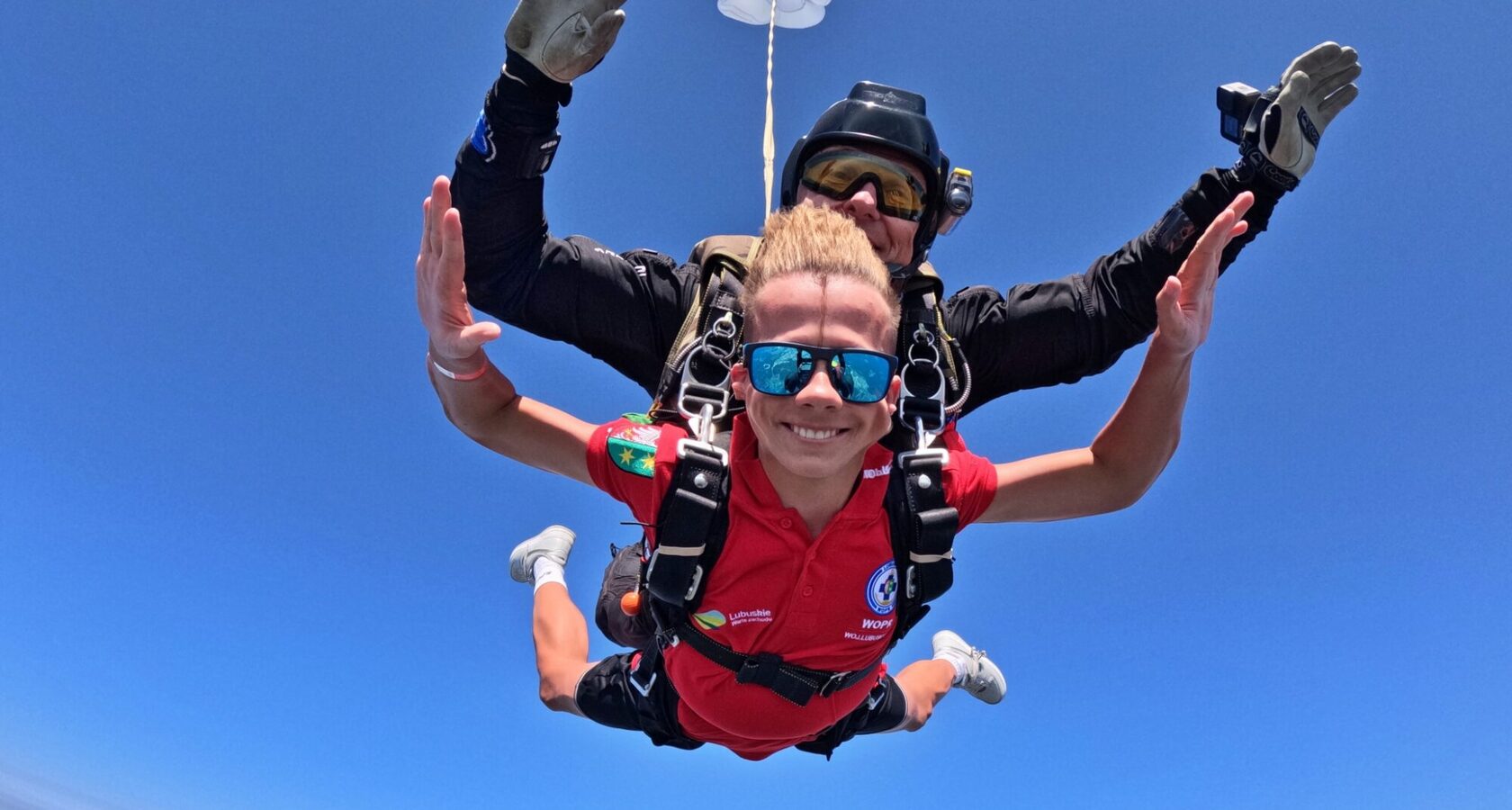 Twój pierwszy skok odbędzie się w tandemie, co to oznacza? To, że jesteś przypięty do doświadczonego instruktora (który ma na swoim koncie co najmniej 1000 skoków) więc nie musisz się martwić o jakiekolwiek błędy, oznacza to również że on lub ona wykona całą ciężką pracę za Ciebie. A tobie pozostanie cieszenie się prędkością przekraczającą 200 km/h i podziwianiem widoków po otwarciu czaszy spadochronu.