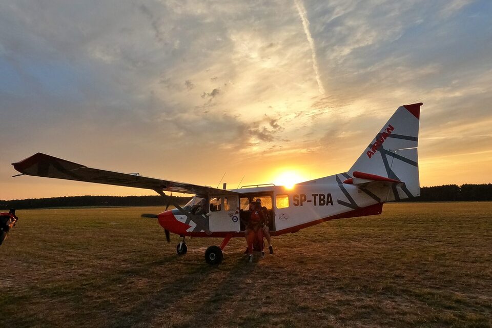 Po przybyciu na lotnisko w Zielonej Górze – Przylepie, czeka Cię wypełnienie niezbędnych dokumentów oraz 15-minutowe szkolenie. Zalecamy pojawienie się co najmniej godzinę przed planowanym skokiem, aby między innymi sprawdzić aktualne warunki pogodowe na lotnisku. Następnie wsiądziesz do samolotu, który wzniesie się na wysokość około 4000 metrów. Po swobodnym spadaniu trwającym około 60 sekund instruktor otworzy spadochron (ważne jest, aby wybrać odpowiedni moment na oddanie skoku, zapewni to bezpieczeństwo i satysfakcję ze skoku), a Ty będziesz mógł cieszyć się kilkuminutowym lotem i podziwiać najpiękniejszy widok w życiu!
